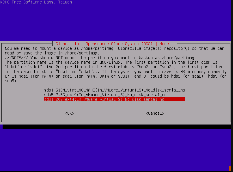 If the disk you are backing up from appears in the list on this screen press Ctrl+C otherwise reconnect the drive and wait 30secs for it to appear in the list.